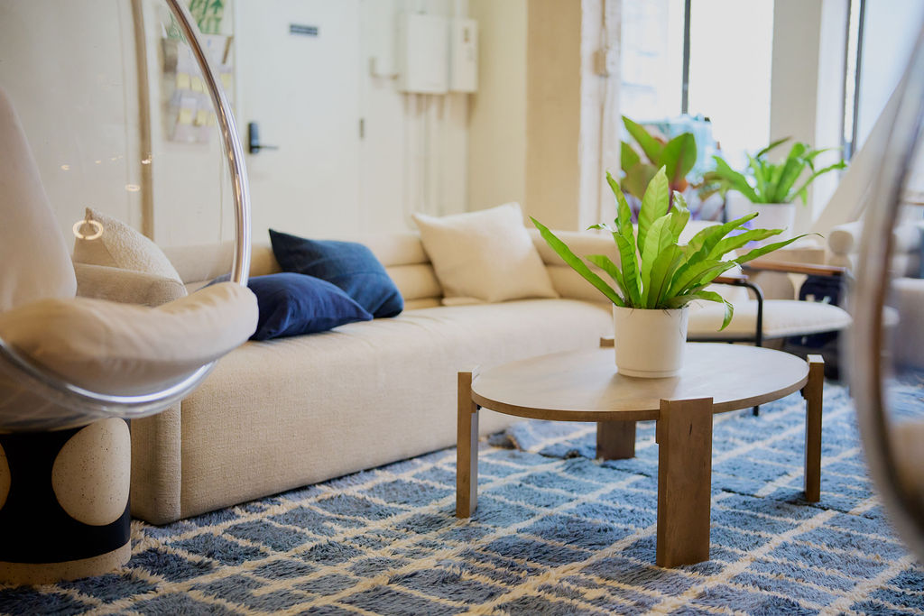 We tackled this transformation by completely redesigning the co-working space, turning a blank canvas into a branded lounge. By integrating some existing furniture along with custom rental pieces that aligned with the client’s vision and brand aesthetic, we achieved a cohesive look. With strategic budget management, thoughtful design, and smart space planning, we created a versatile venue that hosted multiple keynotes, lectures, private meetings, and provided a comfortable place to recharge and foster meaningful connections throughout.