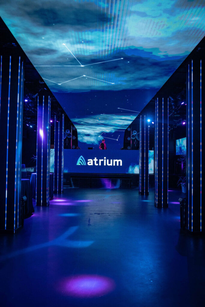 For the evening event, we used lighting and custom digital signage to infuse vibrant energy into the nightclub, bringing the “Starry Night” theme to life.